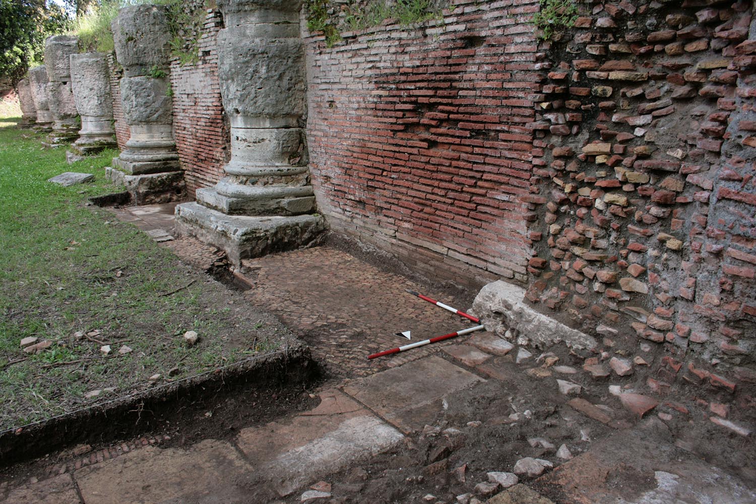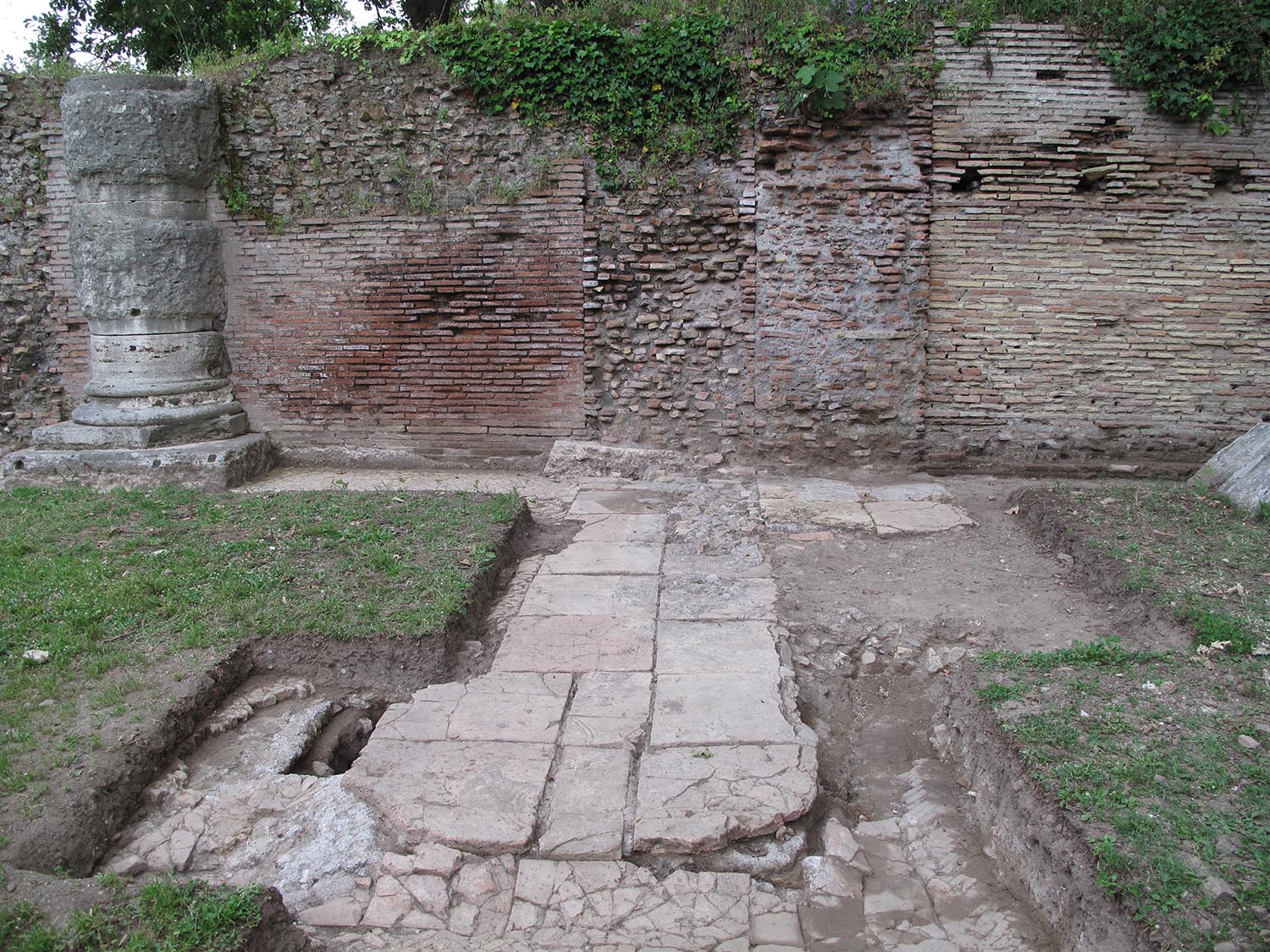 Rifacimento del pavimento di epoca tardoantica con riutilizzo di mattoncini di opus spicatum