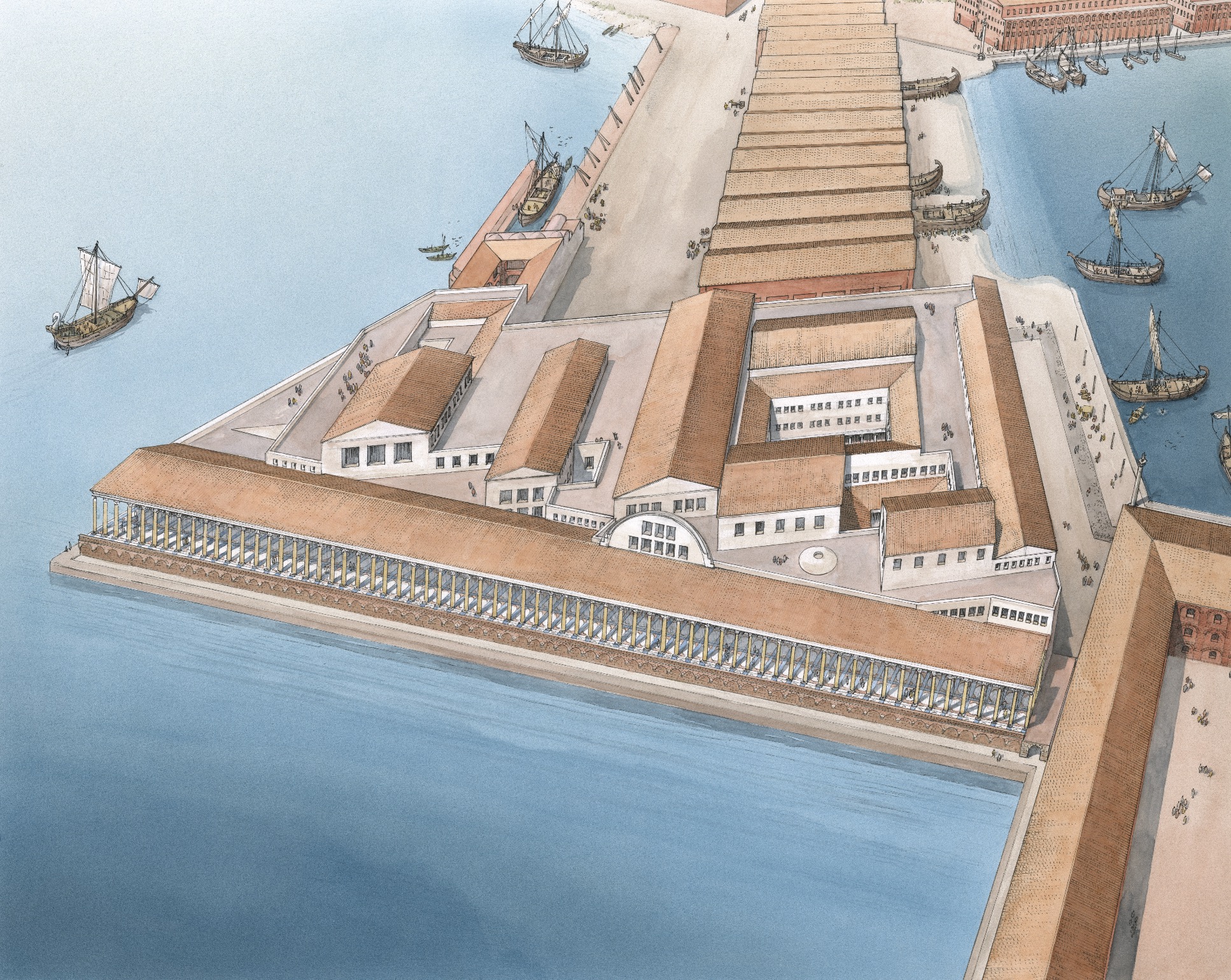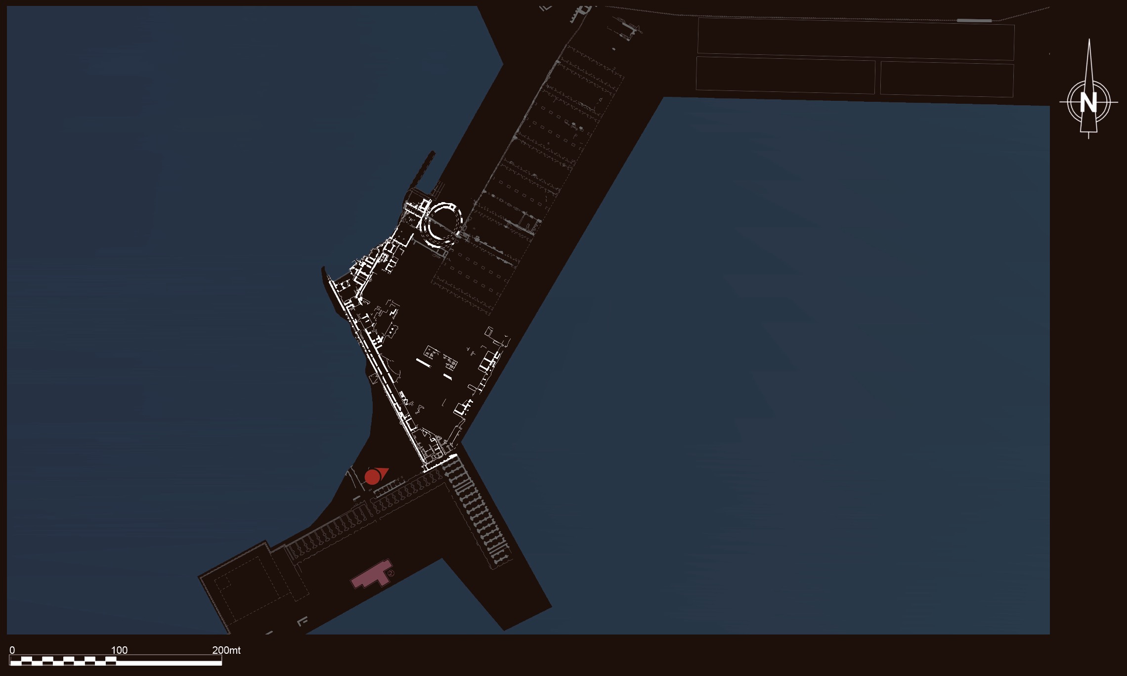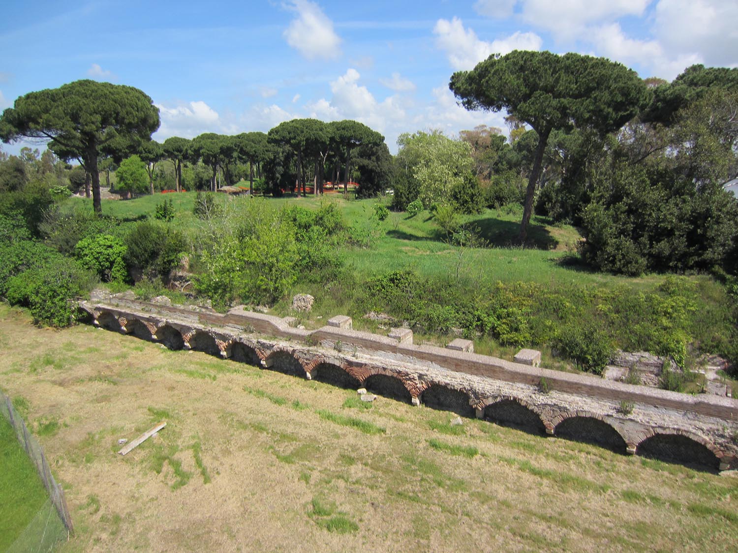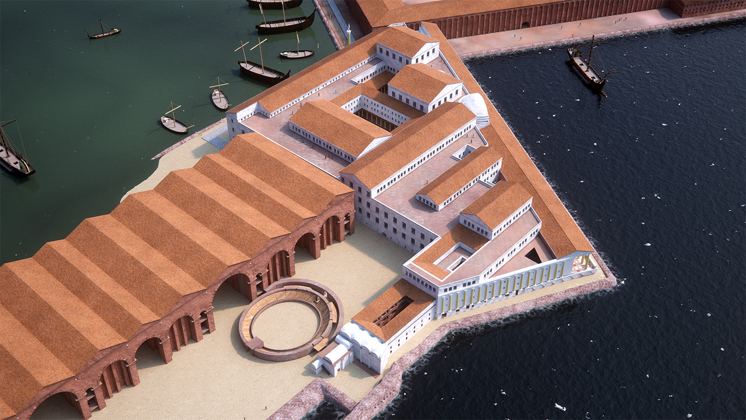 Questo vasto complesso monumentale è noto sin dalla seconda metà del XVI secolo, ma è stato oggetto di indagini archeologiche programmate solo in tempi recenti; edificato in età traianea sui moli di epoca claudia e situato tra i bacini dei porti di Claudio e di Traiano, si estendeva su una superficie di circa due ettari. Presentava un colonnato monumentale sulla facciata occidentale, la c.d. Terrazza di Traiano; al primo piano si susseguivano peristili e complessi termali riccamente decorati, il piano terreno era articolato in un reticolo di corridoi e ambienti di servizio ancora non completamente indagati. La cospicua quantità e la mirabile qualità di statue e altri reperti recuperati tra il 1864 ed il 1867 hanno fatto ipotizzare che si trattasse di una sorta di residenza imperiale. Secondo un’ipotesi recente, parte del complesso sarebbe stata sede dei funzionari del porto. Del Palazzo Imperiale faceva inoltre parte un piccolo anfiteatro, edificato in epoca severiana.