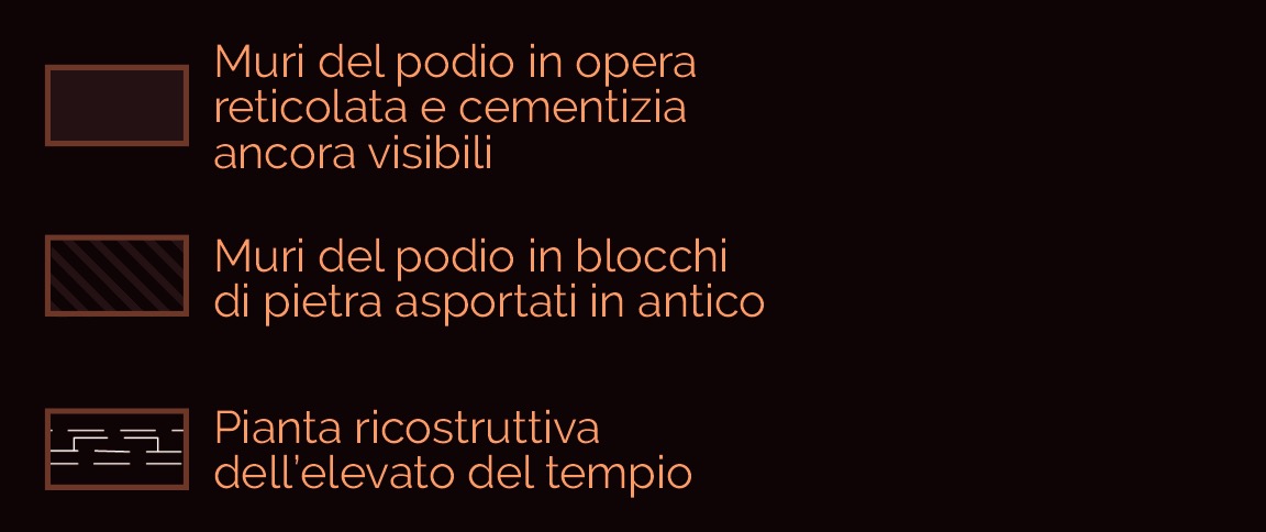 Forse eretto quando Augusto era ancora in vita (all’inizio del I secolo d.C.), questo imponente tempio fu costruito nella parte sud della piazza del Foro, in asse con il più antico Capitolium; l’associazione del culto dell’imperatore ai culti tradizionali della città aveva un evidente significato simbolico e ideologico. Dell’edificio restano le sostruzioni e parte dell’originaria decorazione architettonica in marmo, tra cui il frontone posteriore e la statua della Vittoria in volo, che doveva essere collocata sulla sommità del tetto: questi elementi marmorei sono ora rimontati su un muro moderno, in prossimità dell’edificio. Sulla facciata del tempio si trovava probabilmente una tribuna, da cui gli oratori si rivolgevano al popolo.