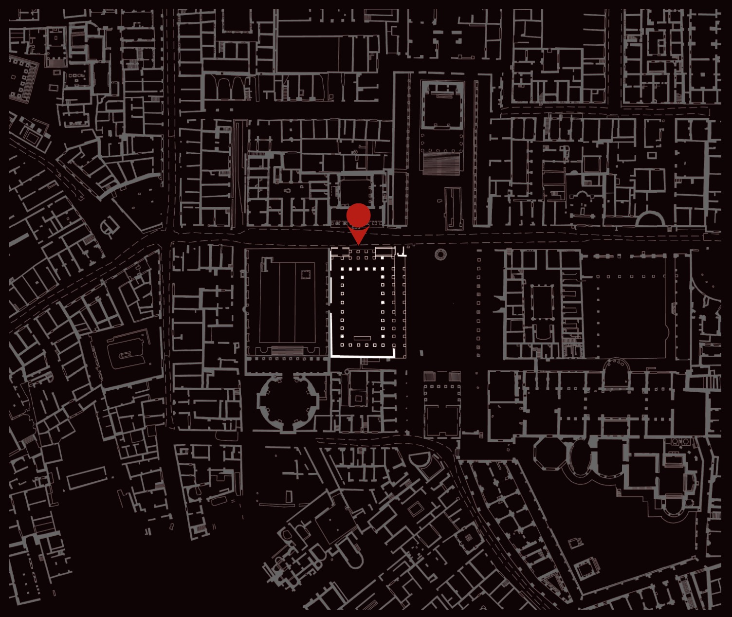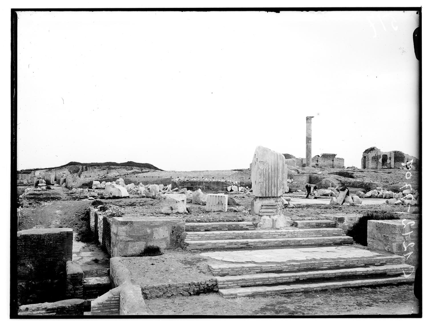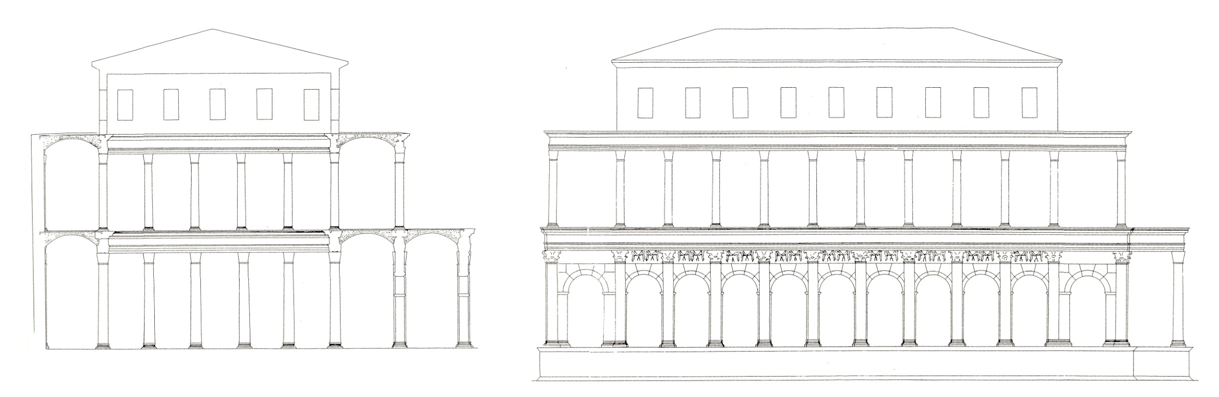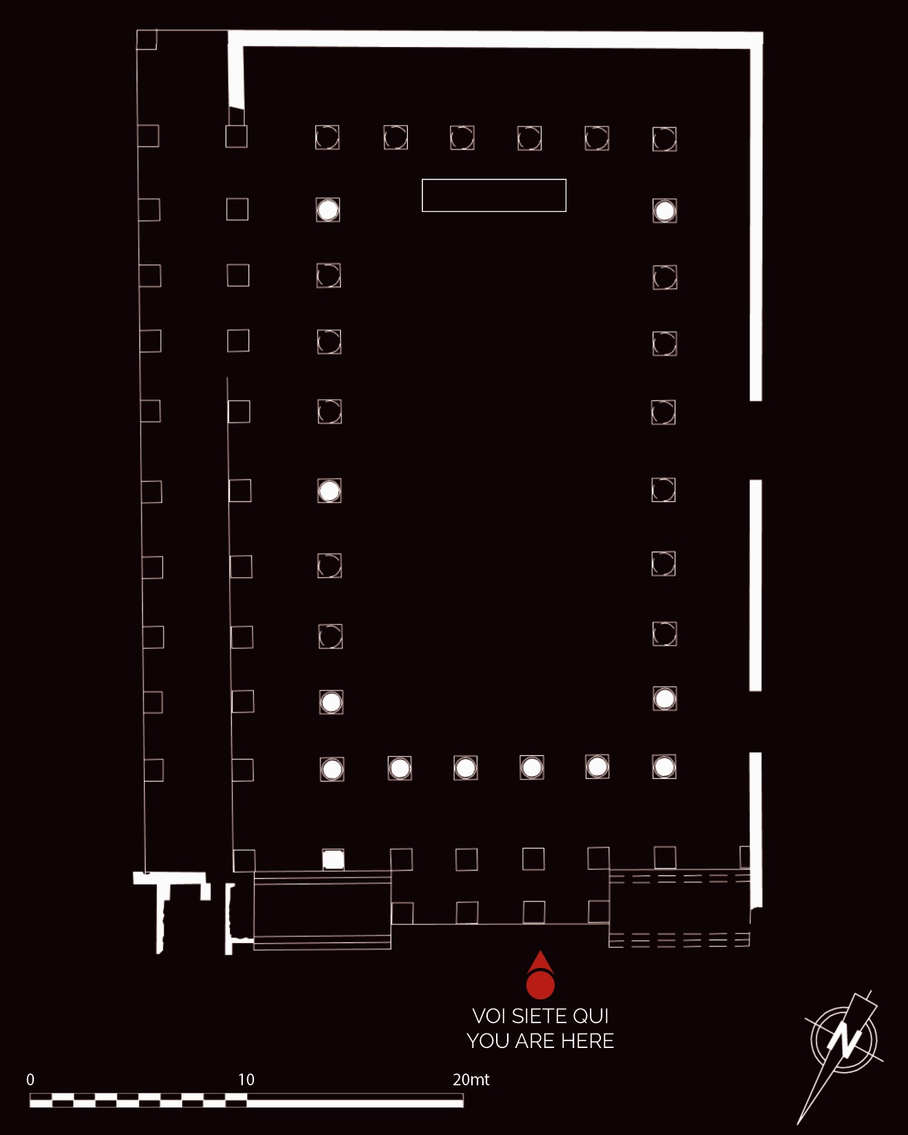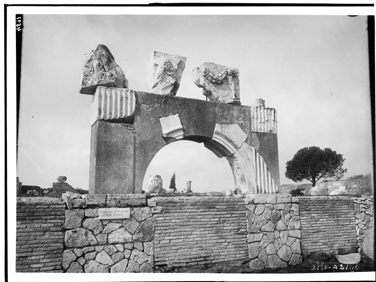 La Basilica, utilizzata per amministrare la giustizia e per condurre affari, fu costruita tra la fine del I e gli inizi del II secolo d.C. Accessibile dal Decumano attraverso un ingresso monumentale, si presentava come una grande aula impreziosita da colonne e pavimento marmorei. Sul fondo dell’aula sono ancora visibili i resti del podio riservato ai giudici. Sul lato orientale la Basilica era collegata scenograficamente alla piazza del Foro mediante un doppio portico, realizzato con pilastri laterizi rivestiti di marmo e decorato con un fregio raffigurante amorini e festoni. Ai pannelli collocati tra le colonne del secondo piano dell’edificio, affacciate sull’aula centrale, sono invece pertinenti i rilievi frammentari in marmo decorati con episodi della fondazione e della storia più antica di Roma.