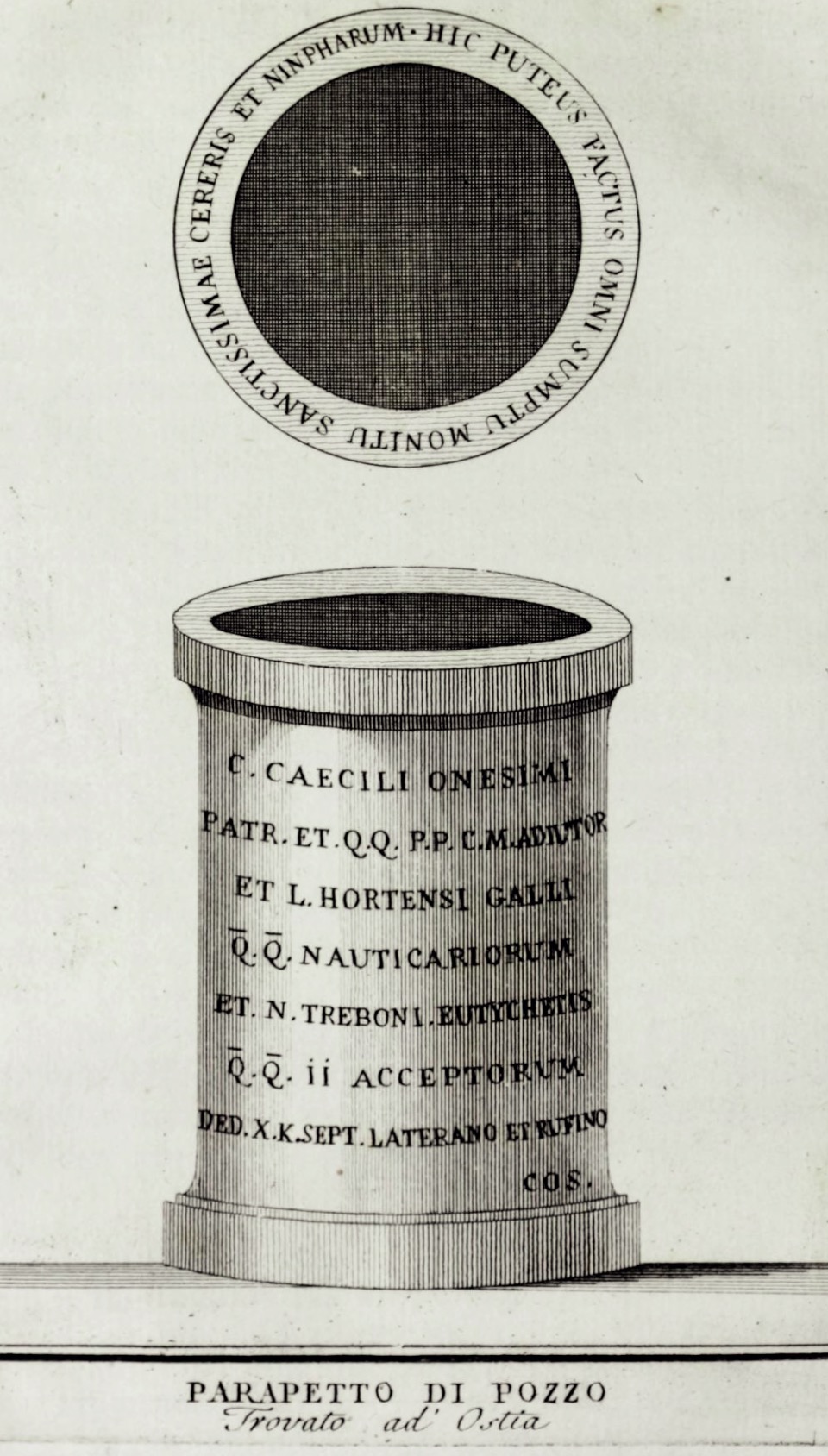 Pozzo del Caseggiato del Larario con dedica a Cerere e alle Ninfe da parte di Q. Cecilio Onesimo