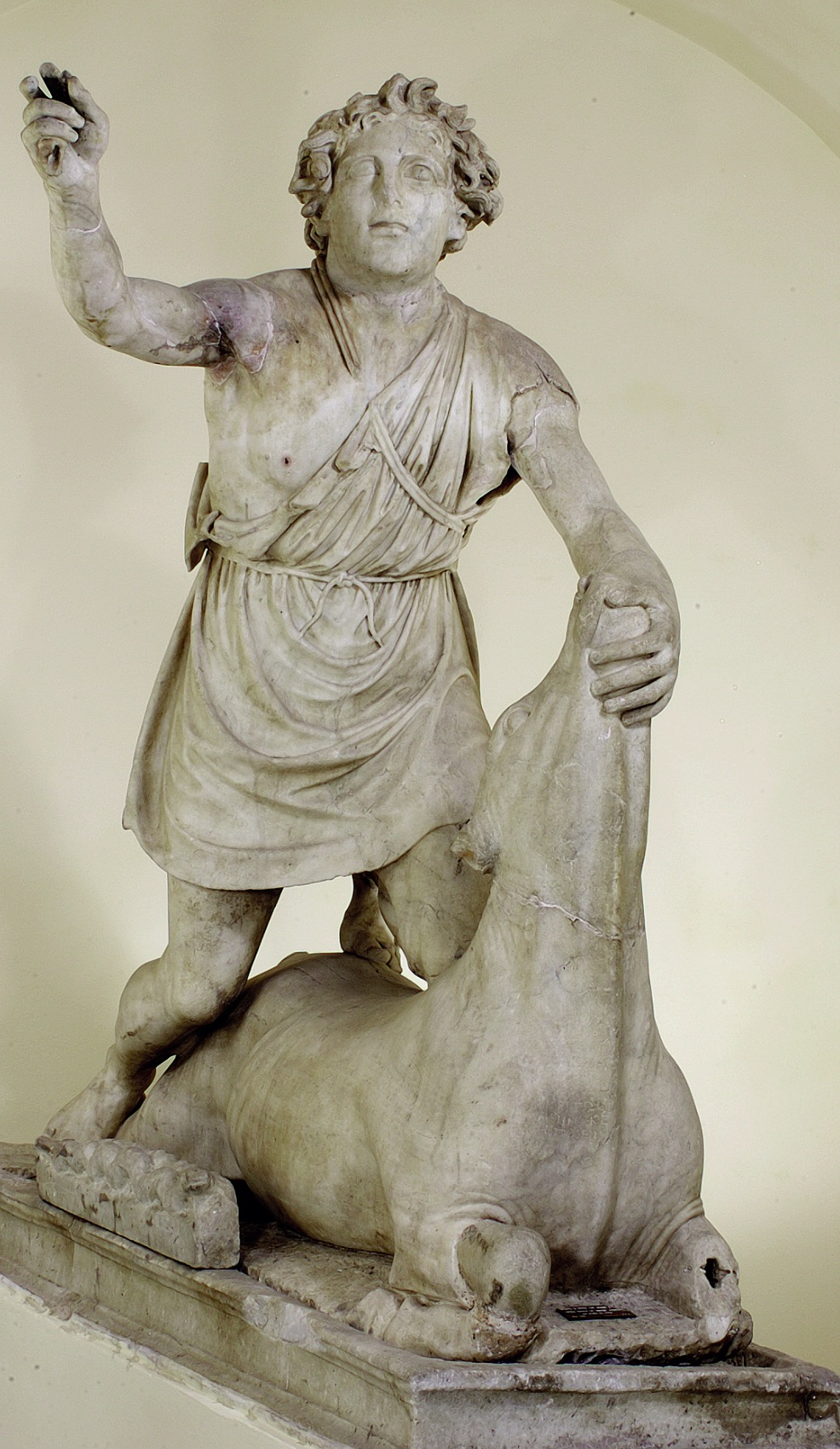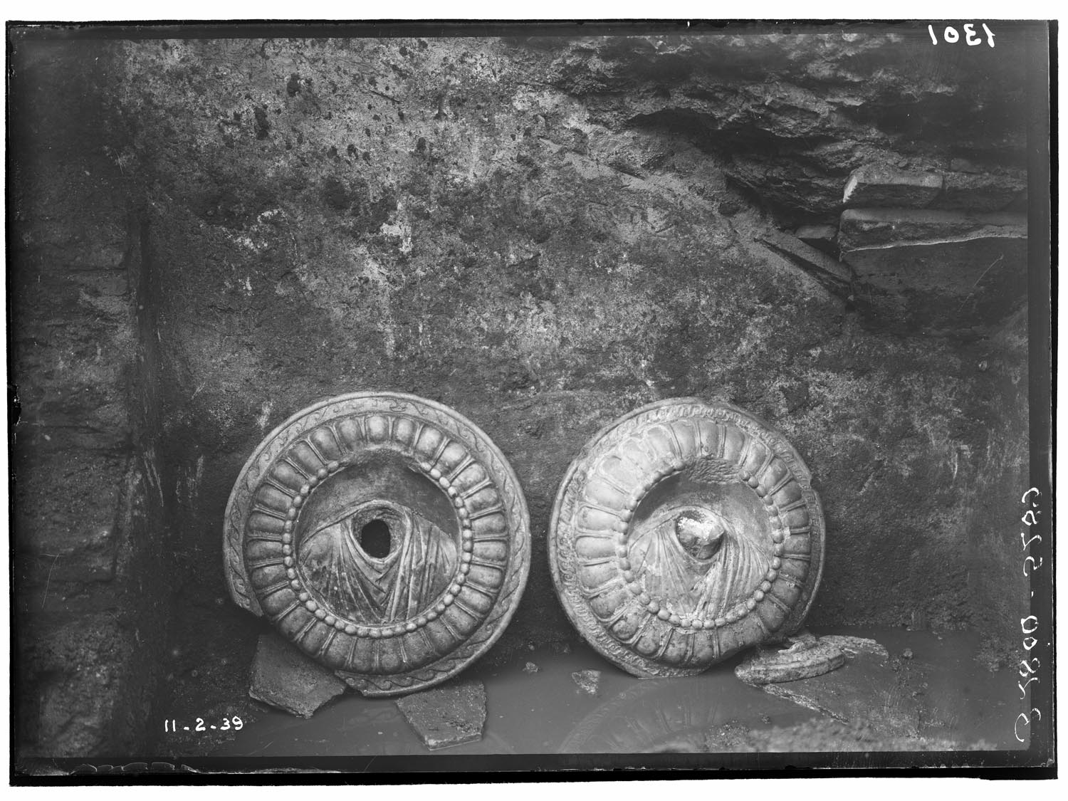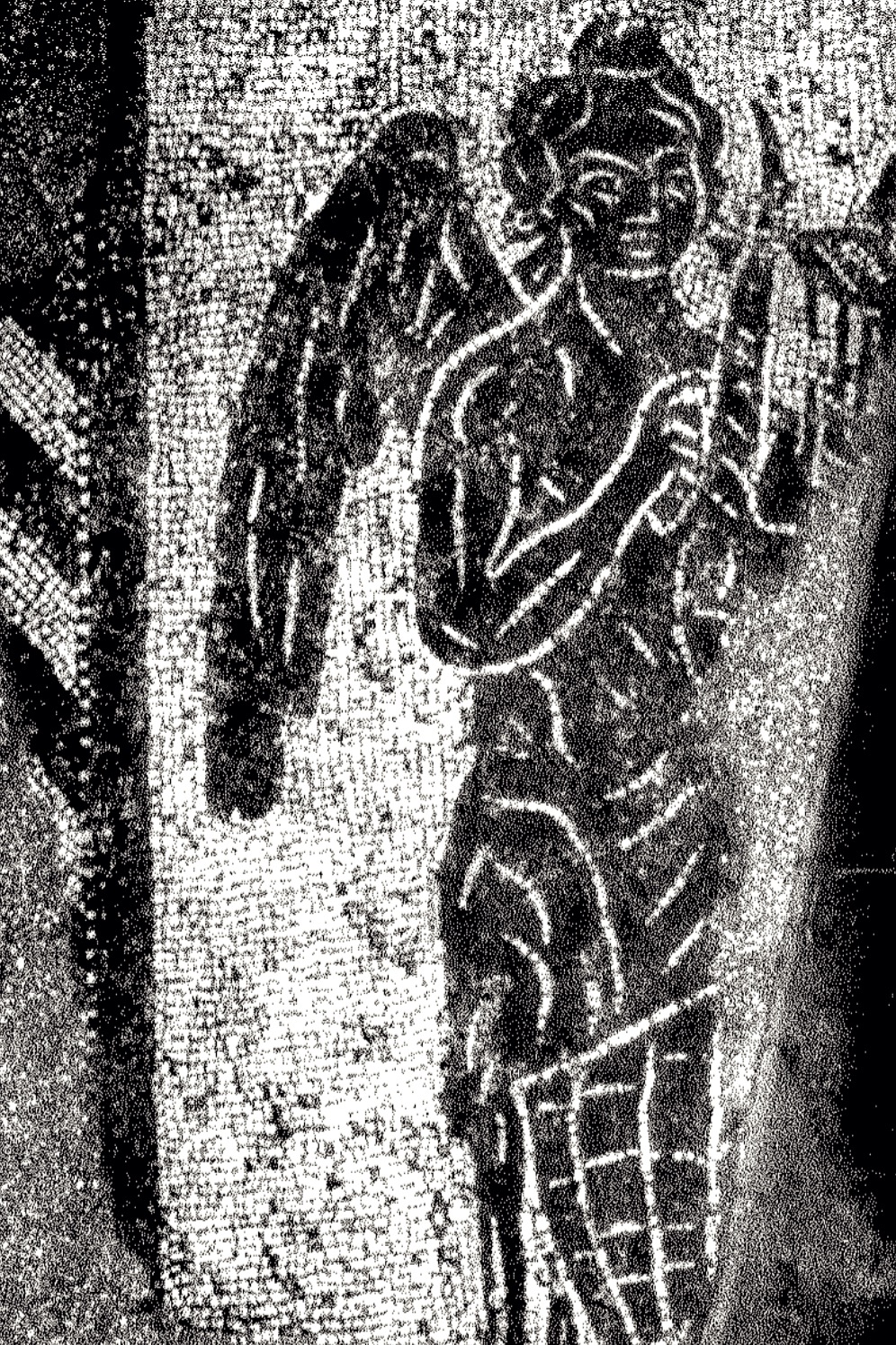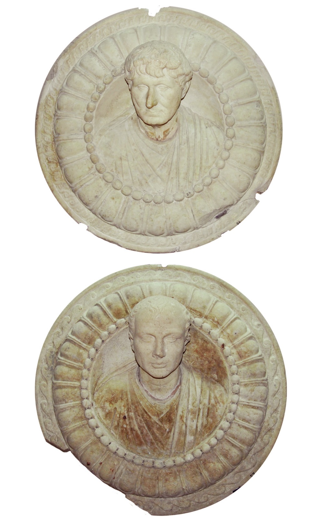 Queste terme private, costruite in età adrianea (117-138 d.C.), ospitavano nel settore sud gli ambienti riscaldati (D-F), mentre la parte nord era occupata dalla sala principale (B), separata mediante due colonne dal frigidarium (sala per i bagni freddi) decorato con un mosaico figurato (C) e da una stanza in seguito adattata a spazio di culto cristiano. Le terme comprendevano inoltre vani di servizio, in uno dei quali era collocata la ruota idraulica (noria) che prelevava, sollevandola, l’acqua dal sottosuolo (G). Una scala esterna conduceva a un ambiente sotterraneo di servizio delle terme, in cui fu installato un mitreo (H). Si conservano i podia (banchine laterali) e i due pilastrini su cui poggiavano i tronchi di piramide che simboleggiavano la pietra da cui era nato Mitra; sul fondo era posta la statua di culto raffigurante Mitra che uccide il toro, di cui oggi è presente un calco, mentre l’originale è conservato nel Museo Ostiense.