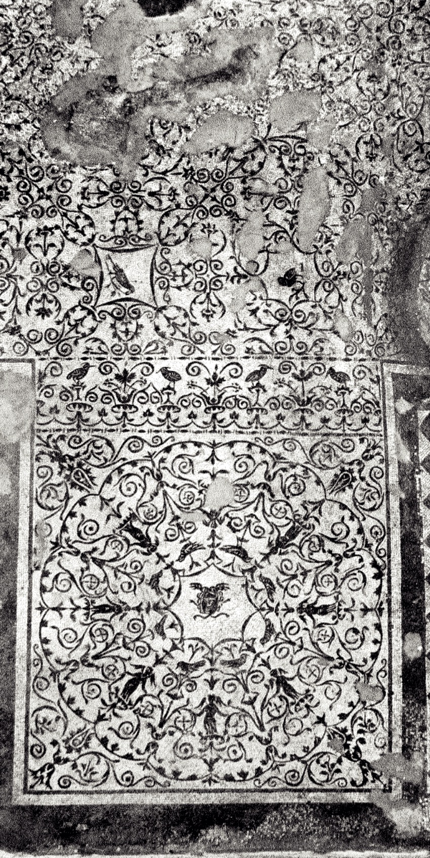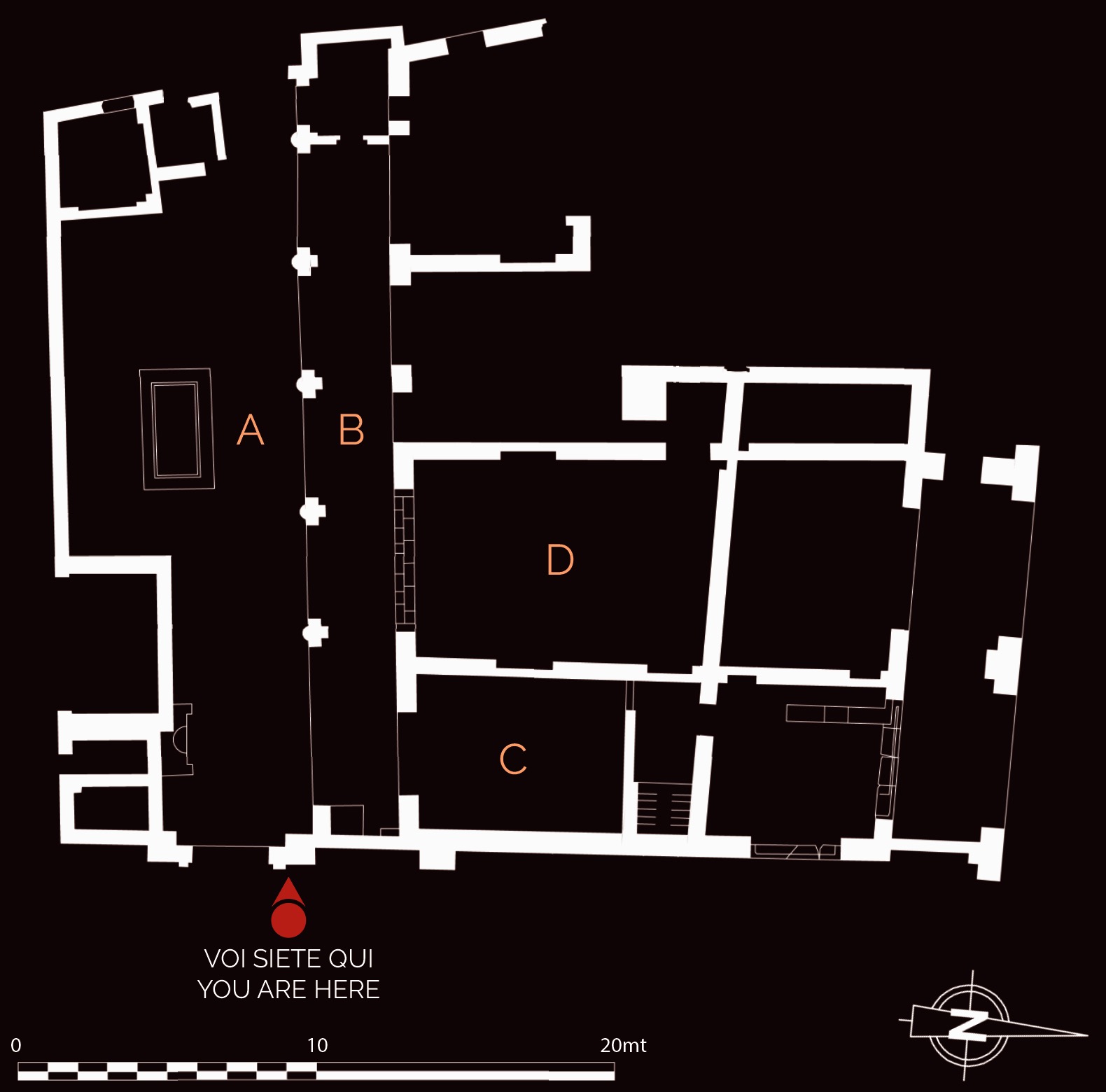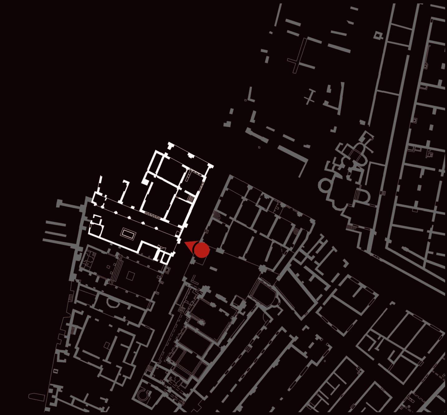 Il caseggiato fu costruito in età adrianea (117-138 d.C.) ed era forse in collegamento con il vicino tempio di Serapide. E’ caratterizzato da un ampio cortile con una vasca al centro (A) e da un portico (B) sul lato settentrionale, su cui si affacciano vari ambienti: tra questi, una sala da pranzo (C), il cui pavimento è decorato con un mosaico che presenta nel settore centrale motivi vegetali e uccelli e, nello spazio tra i letti tricliniari, una testa di Medusa tra figurine alate. La vasta sala attigua alla precedente (D) è invece abbellita da un pavimento in mosaico, con una scena in cui sono raffigurati Bacco e Arianna mentre assistono alla lotta tra Eros e Pan (che simboleggiano rispettivamente l’amore e la passione carnale). I mosaici appartengono tutti alla fase adrianea, mentre il caseggiato mostra rifacimenti databili al III secolo d.C.
