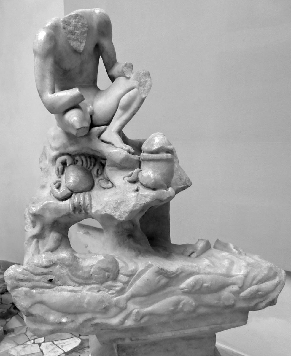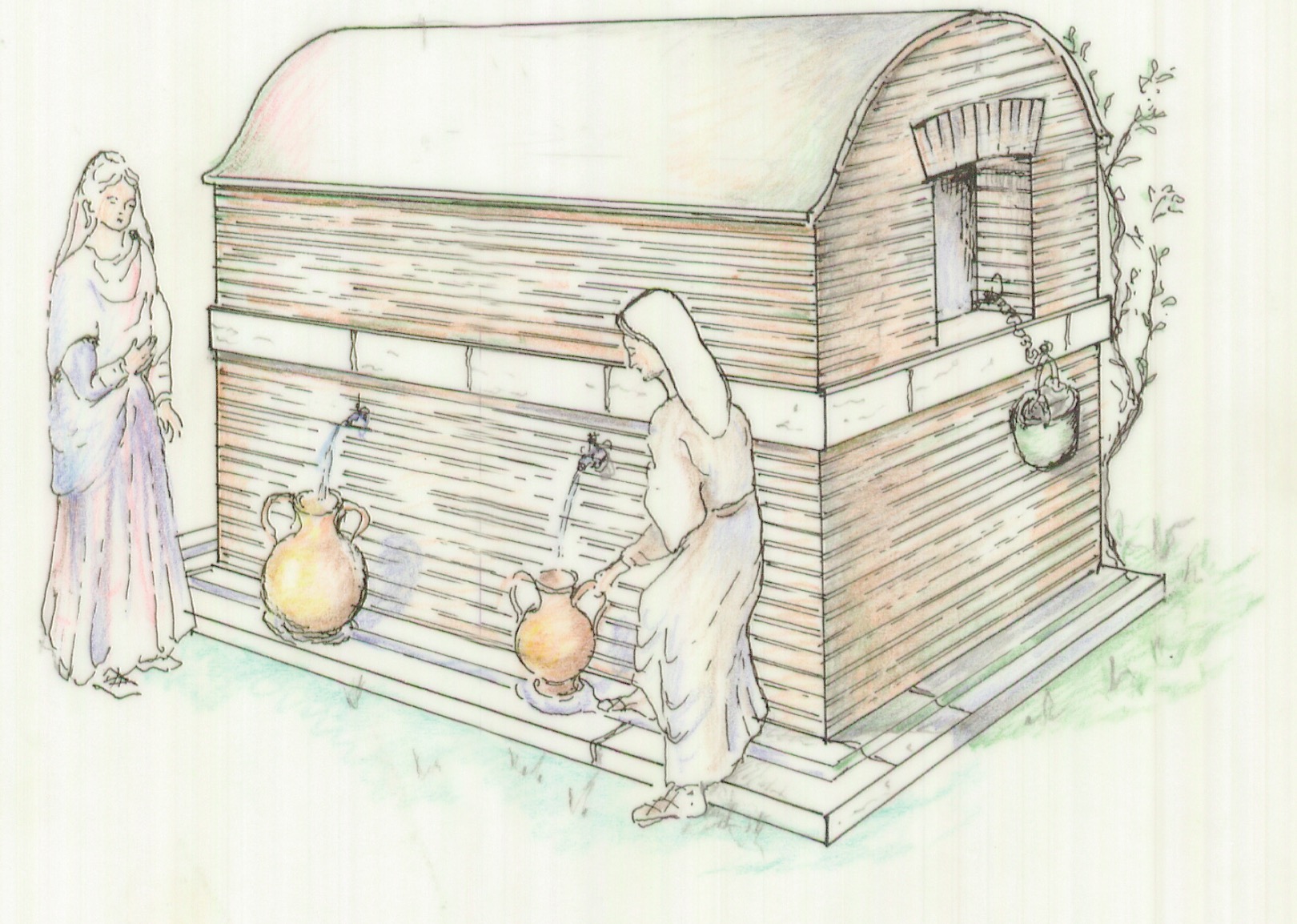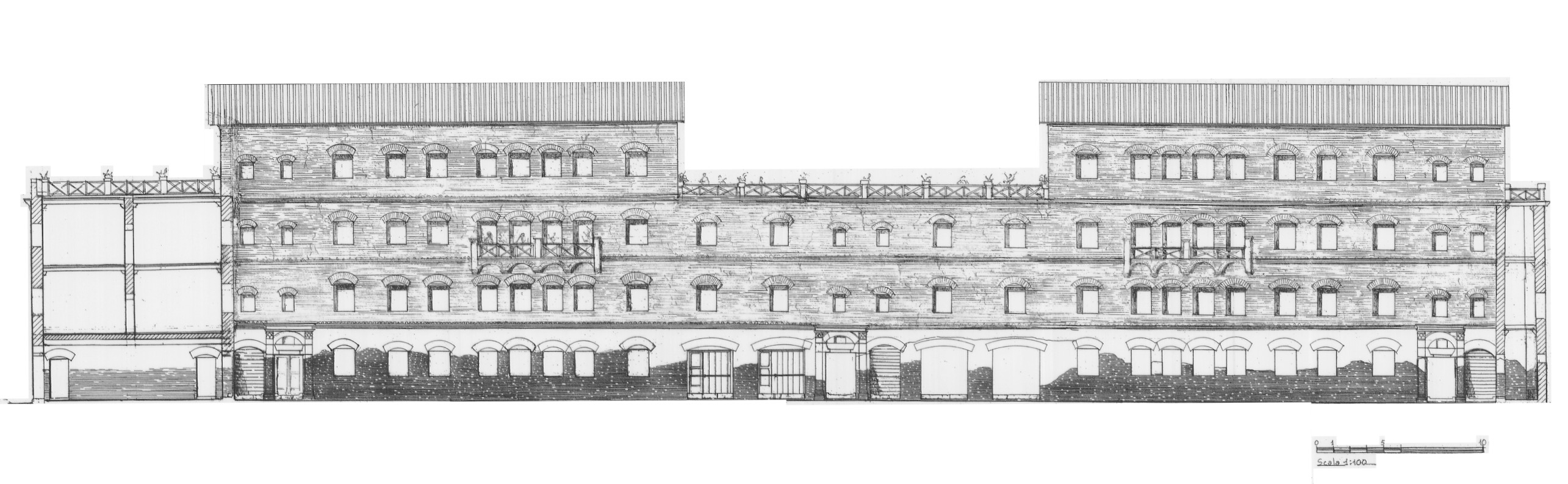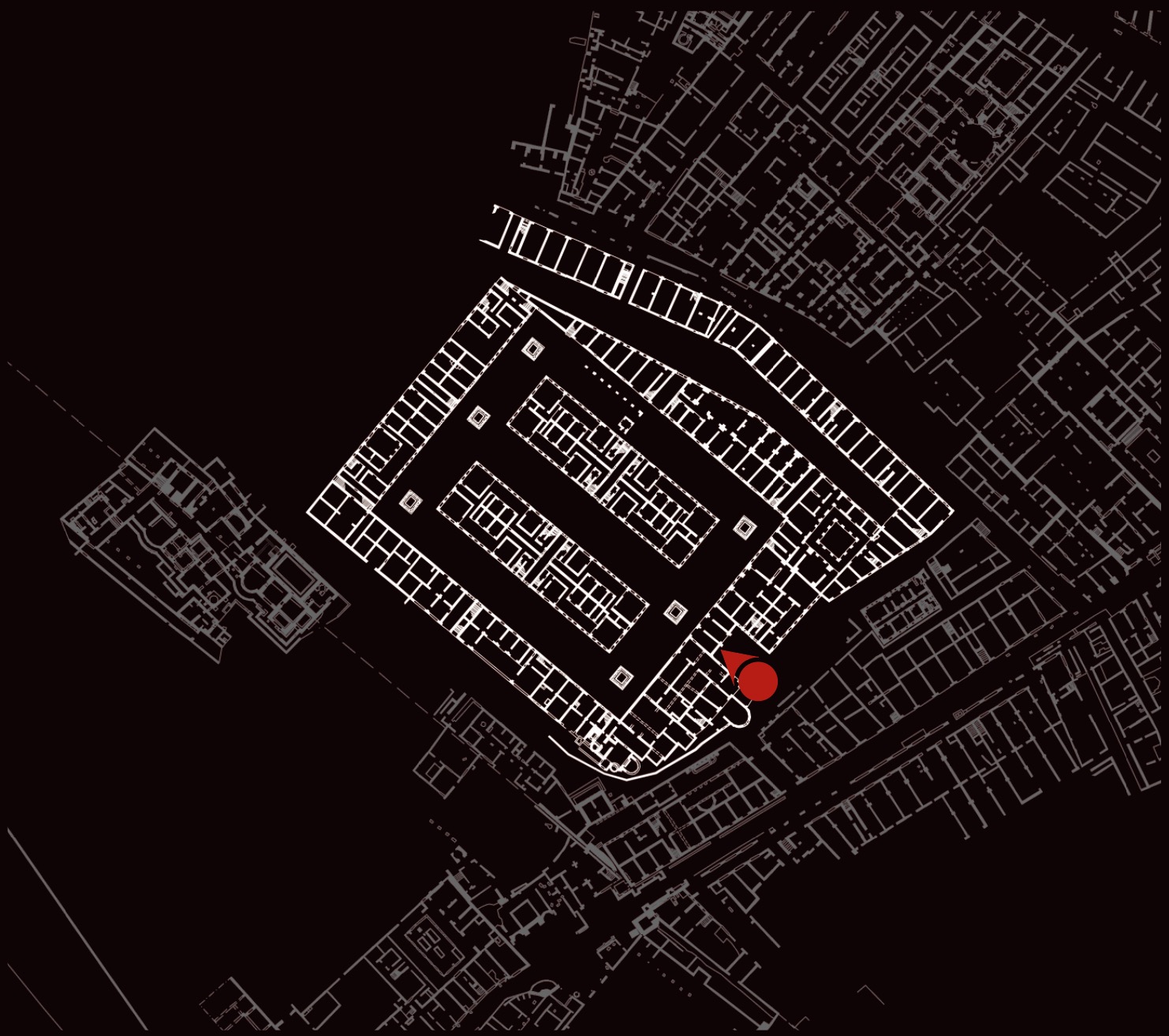 Le Case a Giardino, realizzate intorno al 130 d.C. nell’ambito di un vasto piano edilizio, avevano una funzione prevalentemente residenziale, pur essendo dotate anche di spazi commerciali e di servizio. Il complesso era composto da un quadrilatero esterno e da due blocchi centrali simmetrici, separati da uno spazio adibito a giardino (A), dotato di sei fontane (B). Gli edifici, di almeno tre piani e accessibili dal giardino, avevano scale esterne per raggiungere gli appartamenti posti ai piani più alti, generalmente destinati all’affitto. L’insieme, funzionale ed elegante come un moderno condominio di lusso, era abitato dal ceto medio della città, in un’area prossima al mare e non distante dal centro.