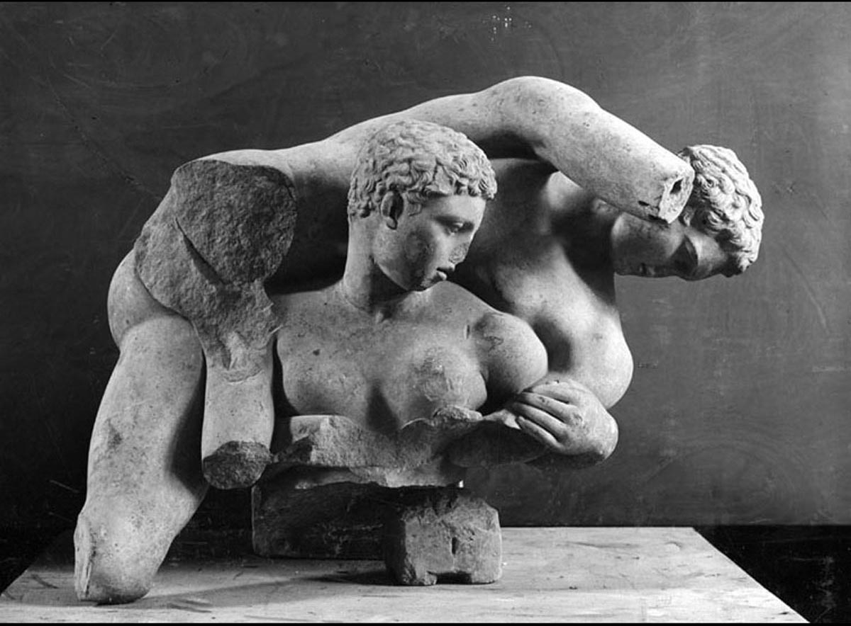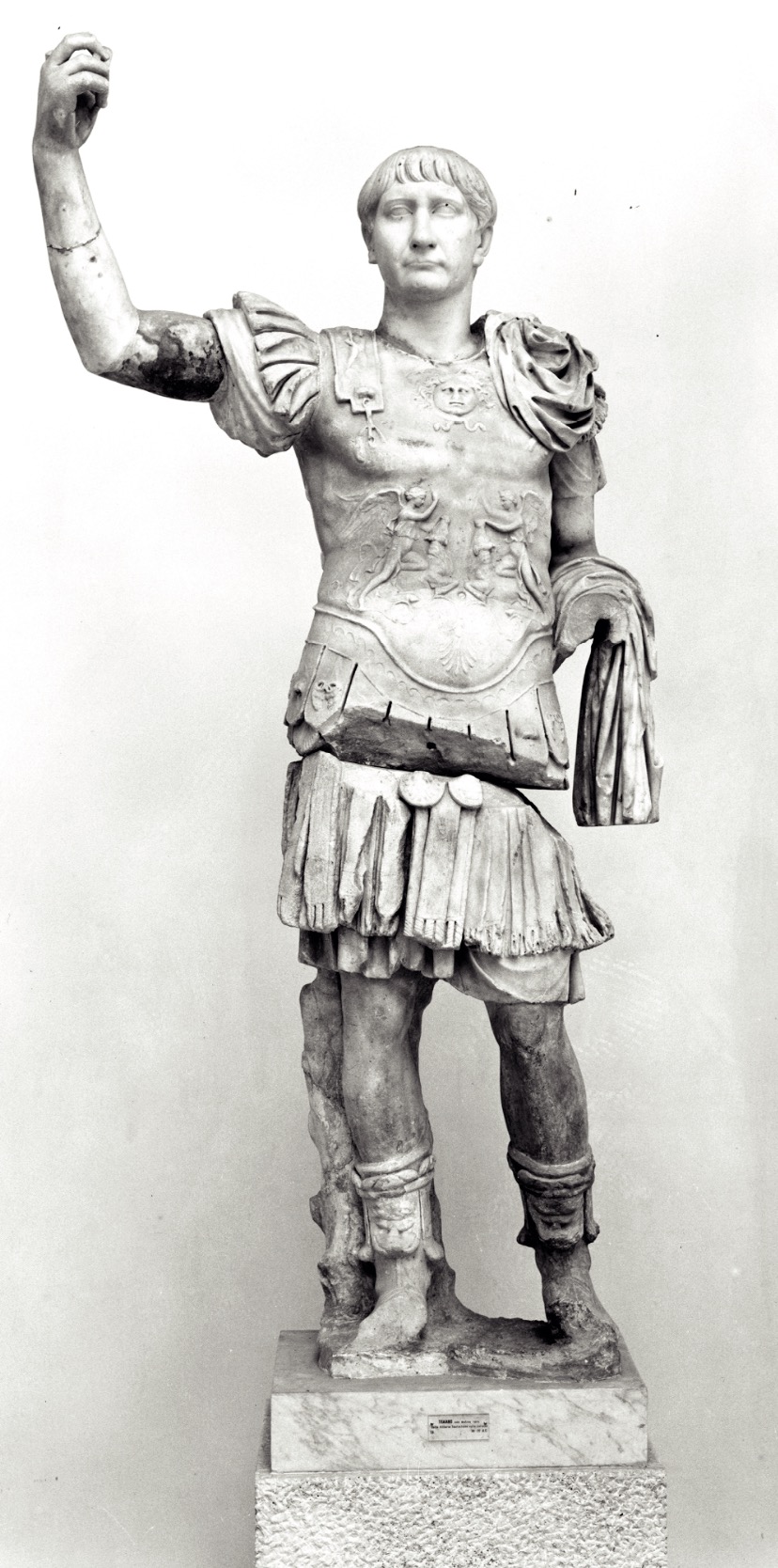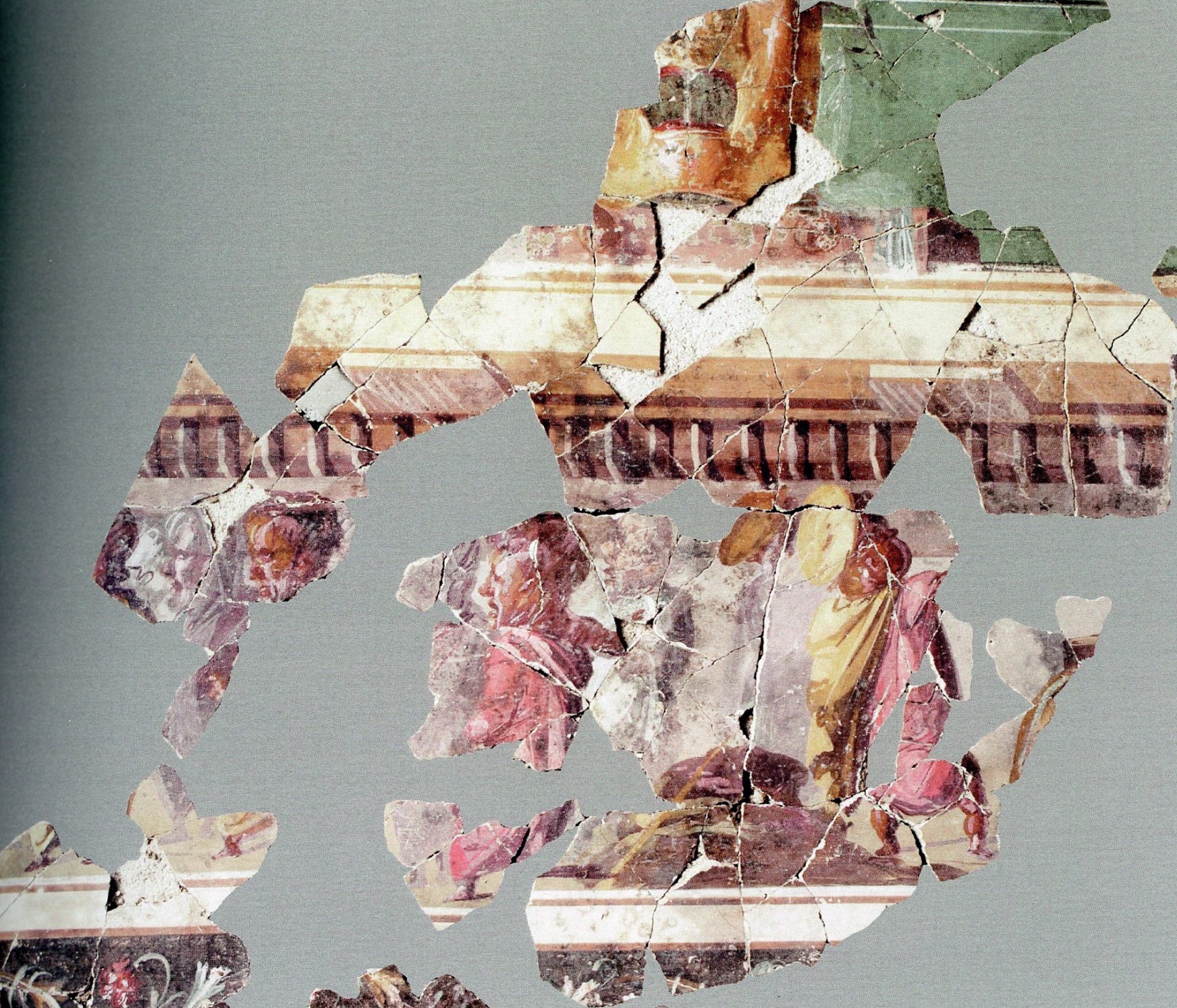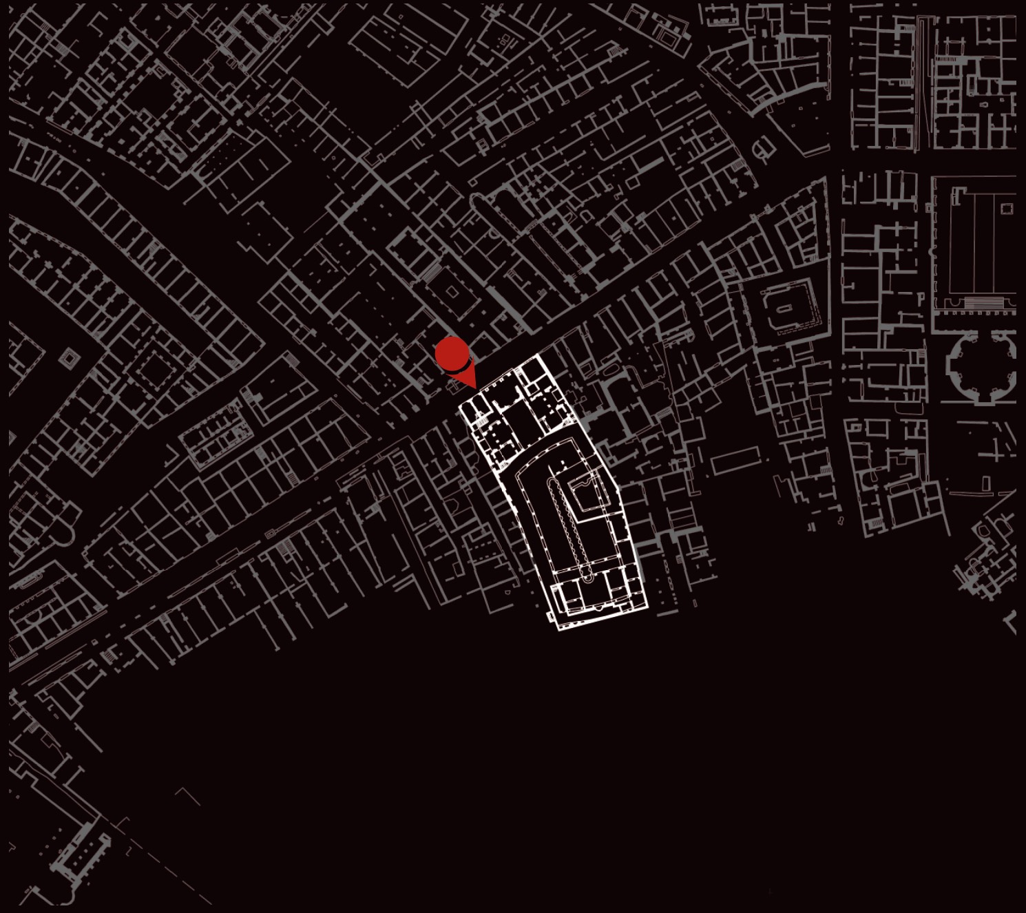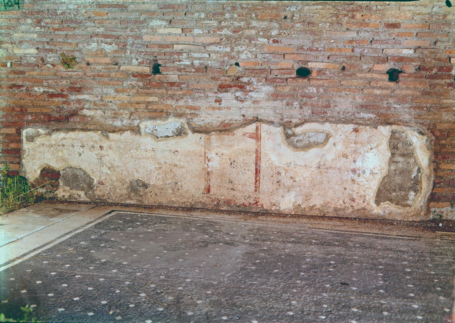 Interpretato come sede del collegio dei fabri navales (costruttori di navi), l’edificio è tradizionalmente datato nel II secolo d.C., ma studi recenti hanno proposto una cronologia al III secolo d.C. Era caratterizzato da un solenne prospetto a esedra con colonne (A), da un vestibolo con ambienti laterali dotati di nicchie (B), in uno dei quali era collocata la statua dell’imperatore Traiano. All’interno, l’edificio si articolava intorno a un grande cortile con colonnato laterizio e vasca centrale (C). Il cortile e la parte di fondo dell’edificio furono trasformati con l’inserimento di una sala da banchetto (D) e di altre stanze di rappresentanza, decorate con pavimenti a intarsi marmorei e affreschi parietali ad imitazione di rivestimenti in marmo. L’edificio sorse su precedenti abitazioni, la più antica delle quali (detta Domus dei Bucrani) è databile al I secolo a.C. A una domus della prima età imperiale (E) appartengono invece un peristilio e ambienti con mosaici, oggi parzialmente ricostruiti nel cortile della Schola.