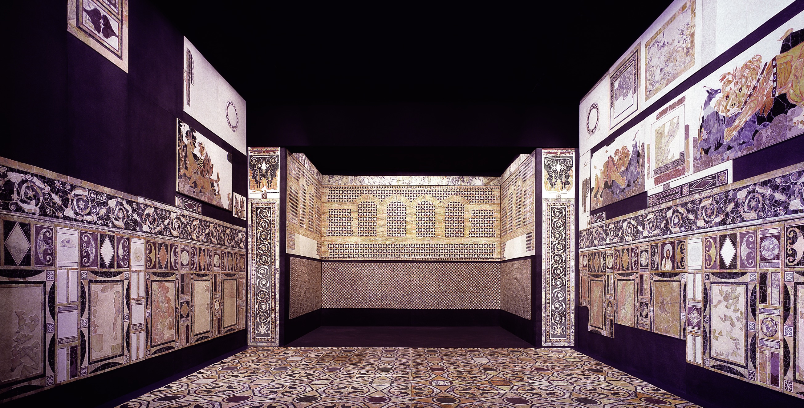 Veduta generale della ricostruzione della decorazione in opus sectile dell’aula
